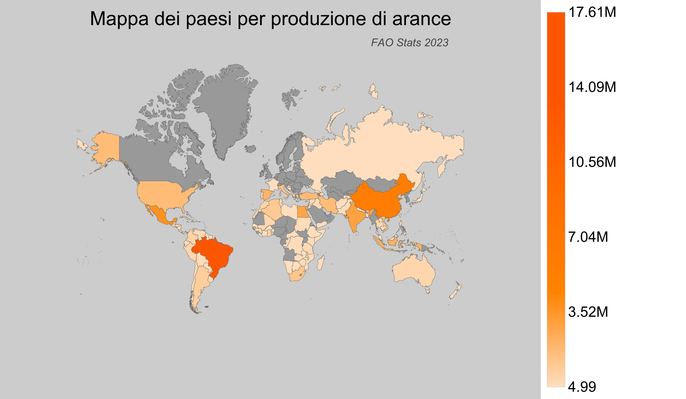 - Brasile è il leader mondiale nella produzione di arance, con una produzione di circa 17,6 milioni di tonnellate nel 2023.