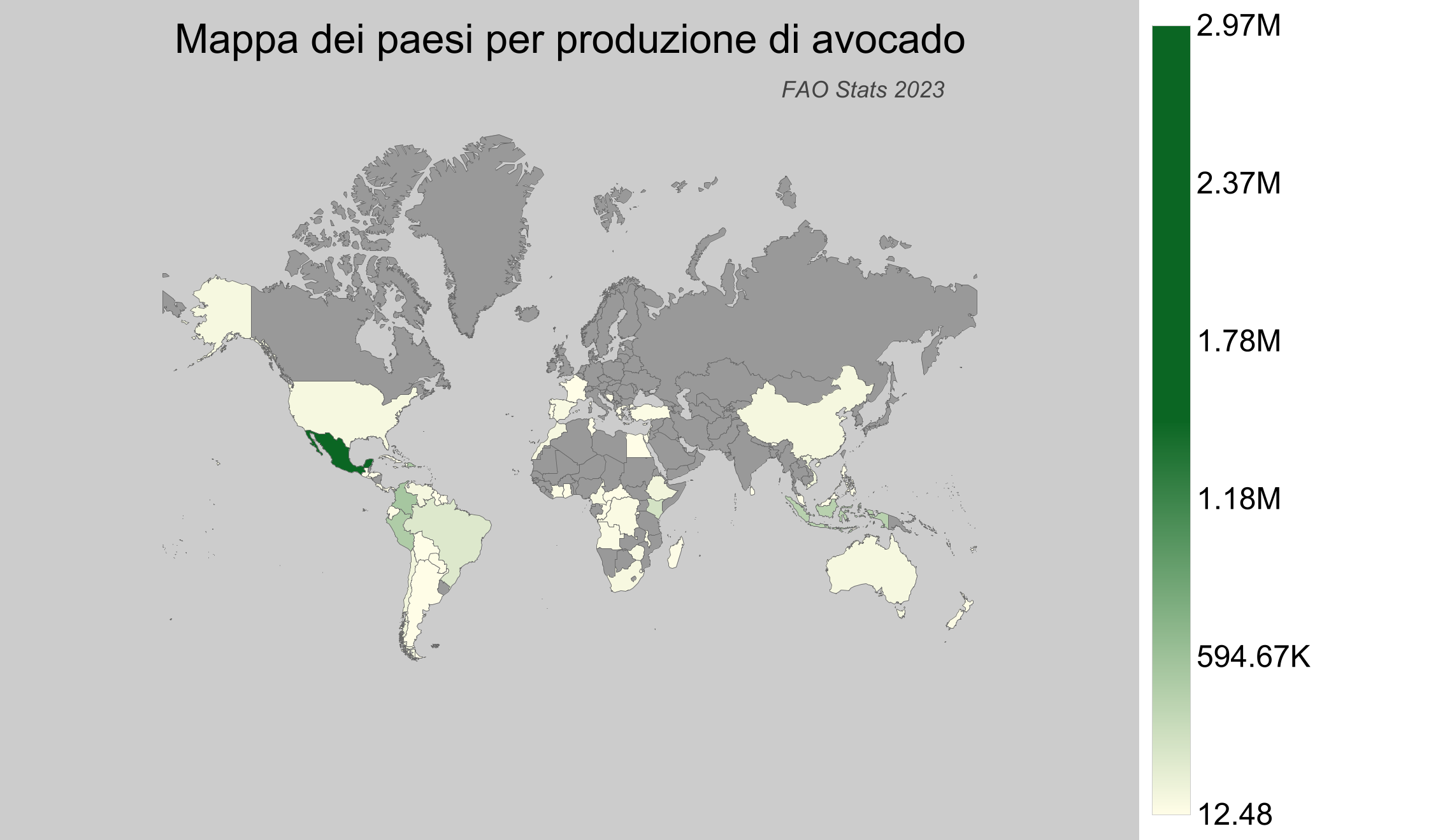 - Messico ha prodotto circa 2,97 milioni di tonnellate di avocado nel 2023, confermandosi come il leader globale nella produzione del frutto.