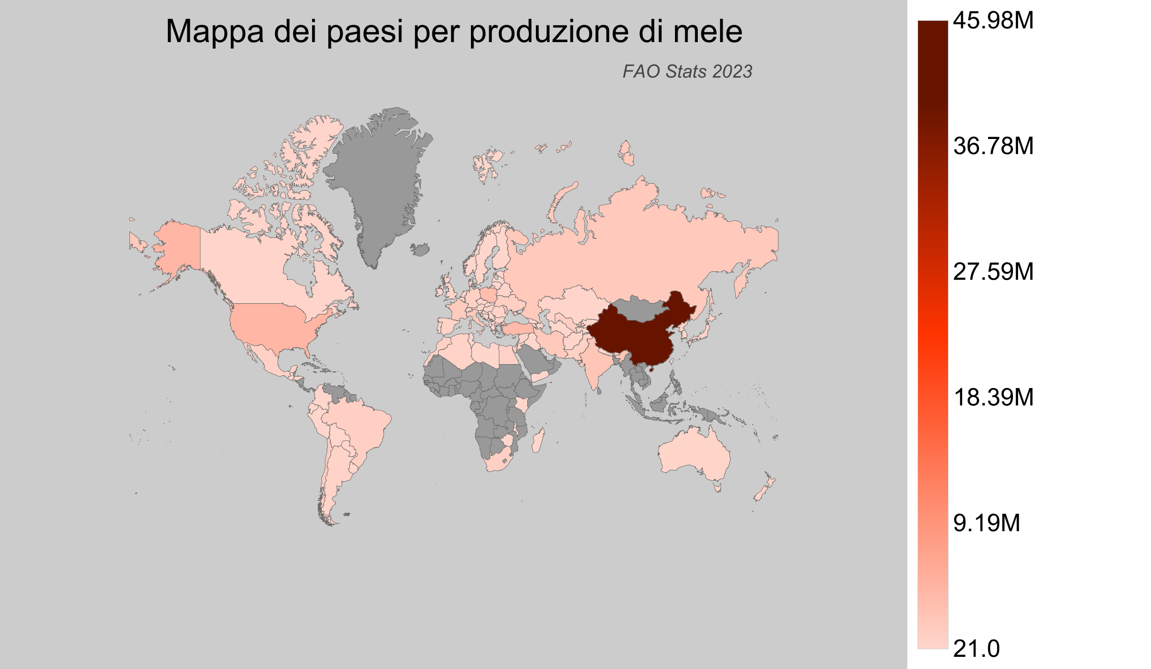 - La Cina, da sola, produce quasi la metà della produzione globale di mele, sottolineando la sua importanza nel panorama agricolo mondiale.