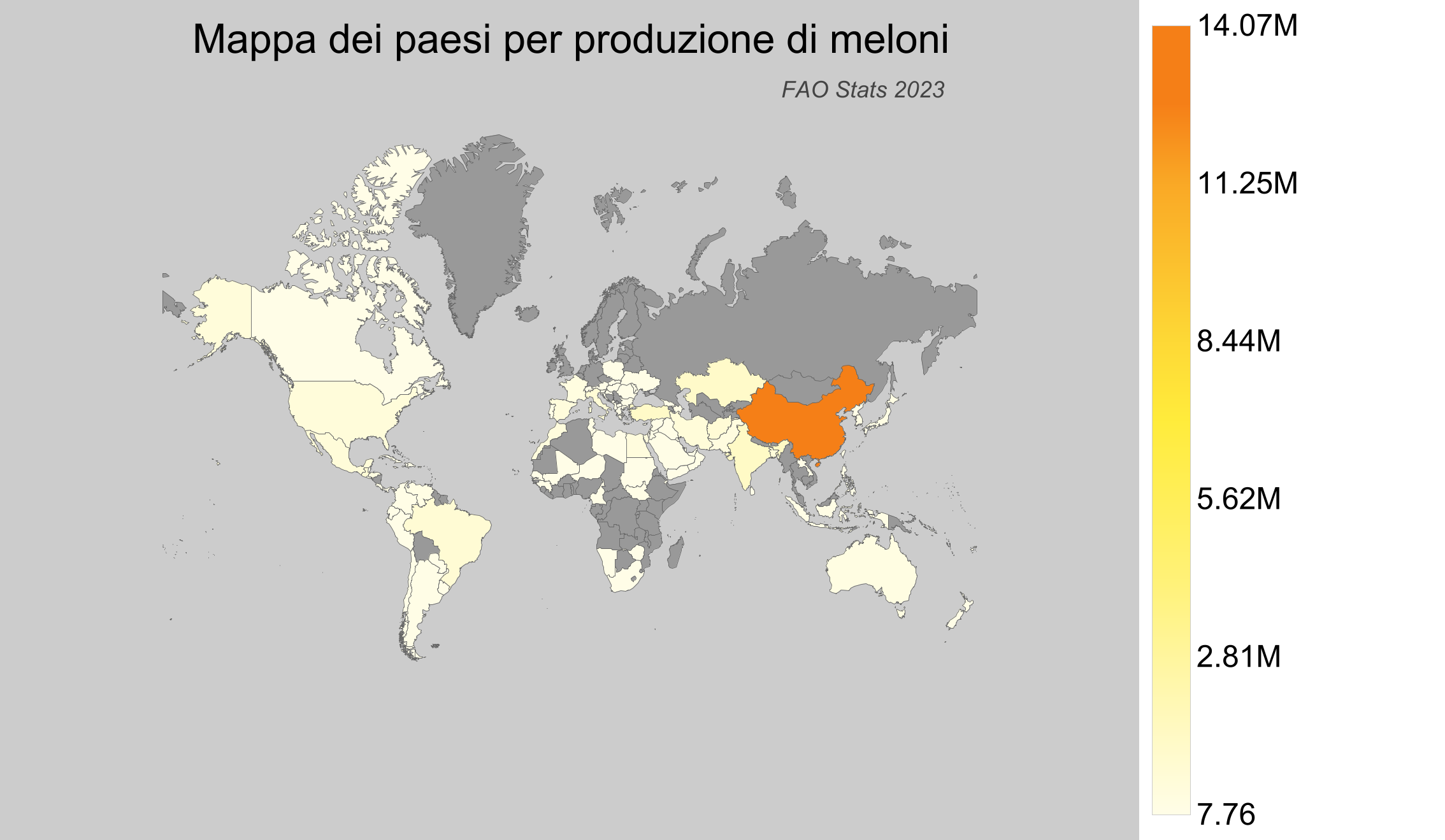 - Cina: circa 14,1 milioni di tonnellate, il più grande produttore di meloni al mondo.