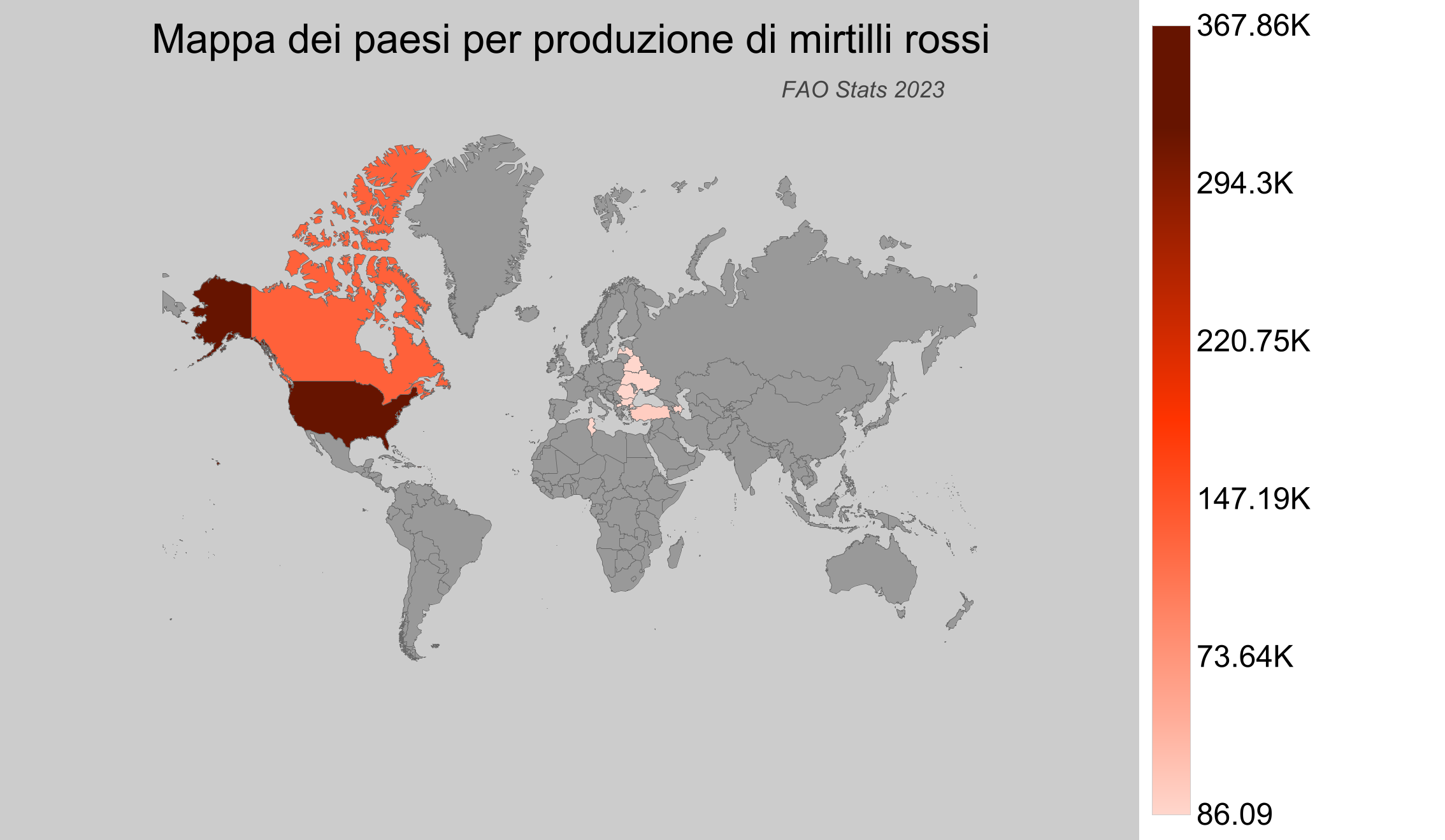 - Italia: Secondo i dati FAO, l'Italia non è un produttore di mirtilli rossi.