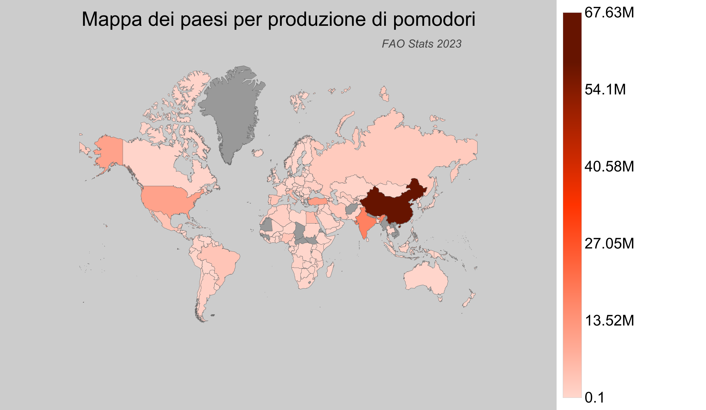 - Cina rimane il principale produttore di pomodori con una produzione di circa 67 milioni di tonnellate.