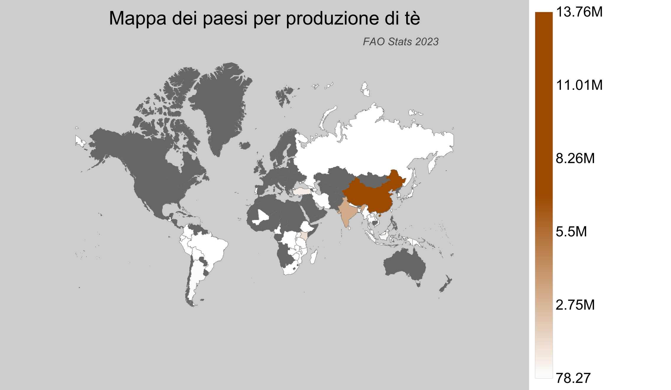 - Gli altri paesi, incluso l'Italia che non produce tè secondo la FAO, rappresentano una parte minore della produzione globale.